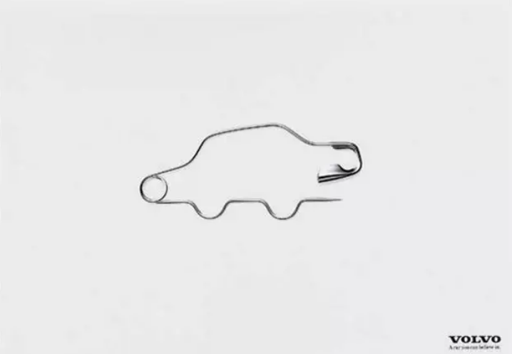 In 1996 Cannes Advertising Festival, Volvo won the Golden Lion for print advertising with this "safety pin", the silent Volvo logo in the lower right corner, together with the small copy underneath - "a car you can trust", together with this pin that is not "pinned" on, unexpectedly stabbing you. The silent Volvo logo in the lower right corner, together with the small text underneath - "A car you can trust", together with the pin that was not "pinned", caught you off guard and stabbed you a little.