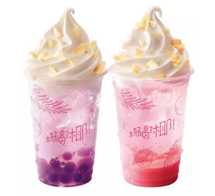 With the growing popularity of coconut water, McDonald's introduces its first coconut water drink: yē yé yě yè. Two flavors: Coconut Water + Coconut Light & Sweet + Coconut Pop + Coconut Flake, and Coconut Water + Coconut Light & Sweet + Coconut Custard + Coconut Flake.