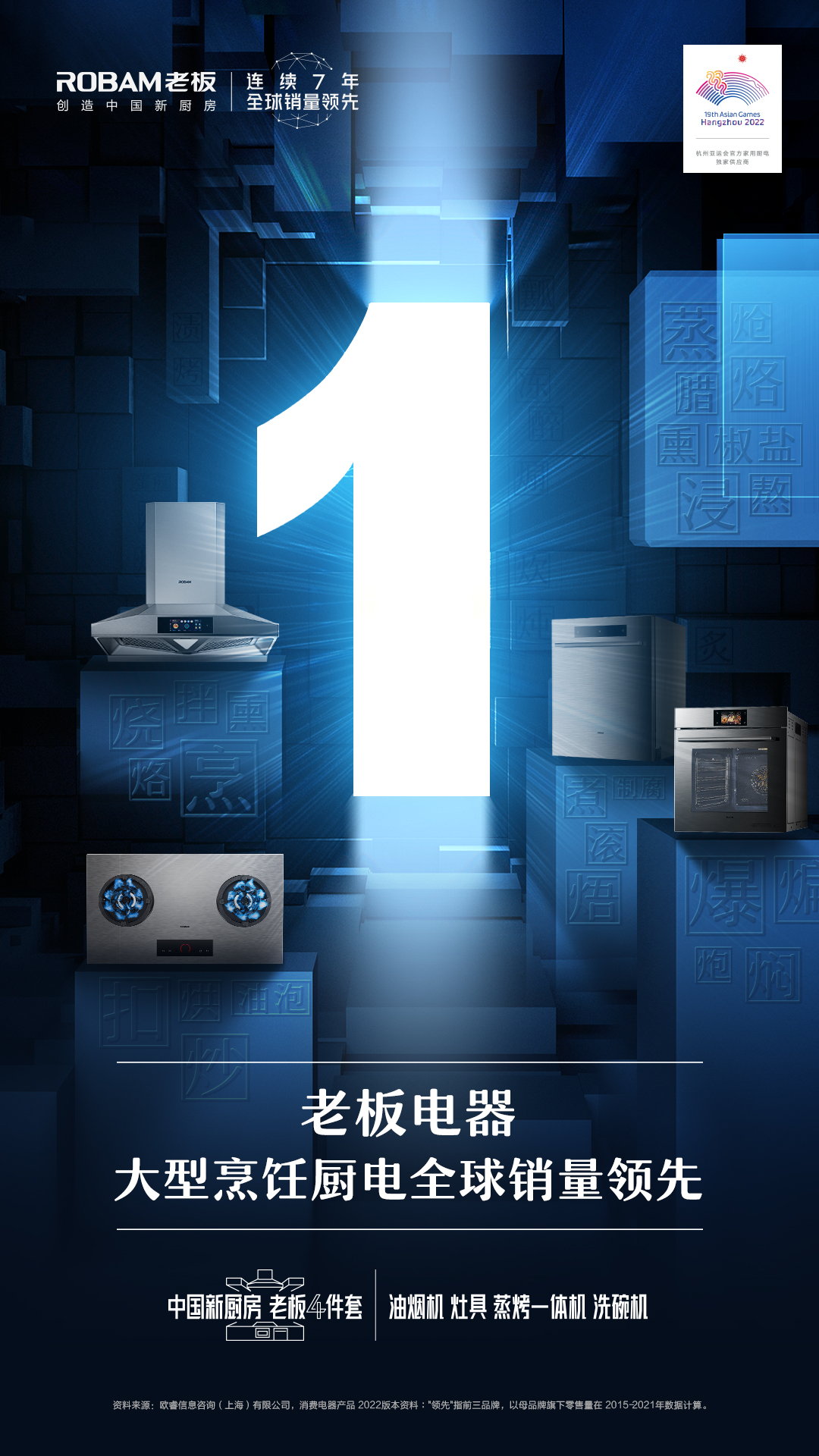 2021年,在全球大环境持续,原材料成本压力加剧等重重考验之下,老板电器依然逆势而上,保持了20%以上的高速增长,油烟机、灶具、蒸烤一体机三大品类实现了行业占有率领先。油烟机、灶具更是连续7年全球销量领先,洗碗机品类也首次在零售渠道取得了国内品牌中的领跑。同时,老板电器在2021年也首次获得了大型烹饪厨电全球销量领先,种种成绩表明老板电器正在从一个油烟机的全球领导者进化为一个烹饪电器的全球领先品牌。