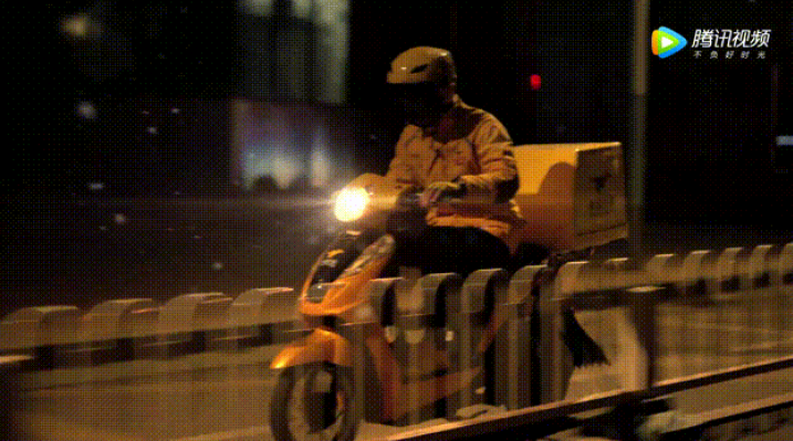 杨洋又一次化身美团骑士,穿过风雪使命必达。