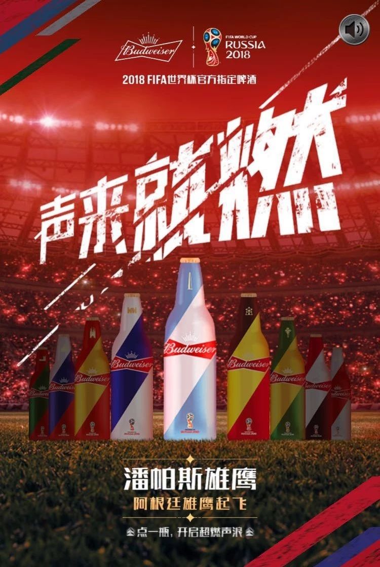 壹捌零助力2018年FIFA世界杯官方指定啤酒&九次世界杯赞助商—百威啤酒,造势“声来就燃”声价活动。