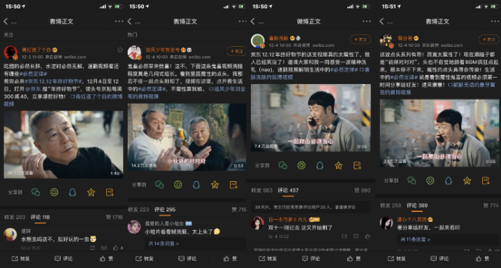 尾款人狂欢刚过,12.12为什么要买?12.12在促销利益点和情感动机上缺“抓手”:没有大额购物补贴,消费者经历双十一过后情感疲软。而广告要做的是唤起根植于消费者心底的需求。我们观察到,人们总想在年终时犒劳自己,因此我们得出“年终了,必须买点好的”。并将这句话作为call for action的号召语,也作为整个12.12传播的底层逻辑。找到抓手后,我们着手开始写TVC脚本。