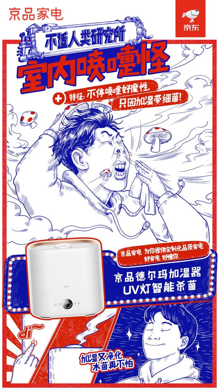 2019年11月8日,《不适人类研究所》沙雕来袭!片子一改往日温情路线,抓住生活中的“不适症状”一顿操作,把民间调侃转化为官方吐槽,并进行内容形式的更新升级!通过趣味夸张的想象与设置,让京东家电成为针对生活“各种不适”的应对良方!